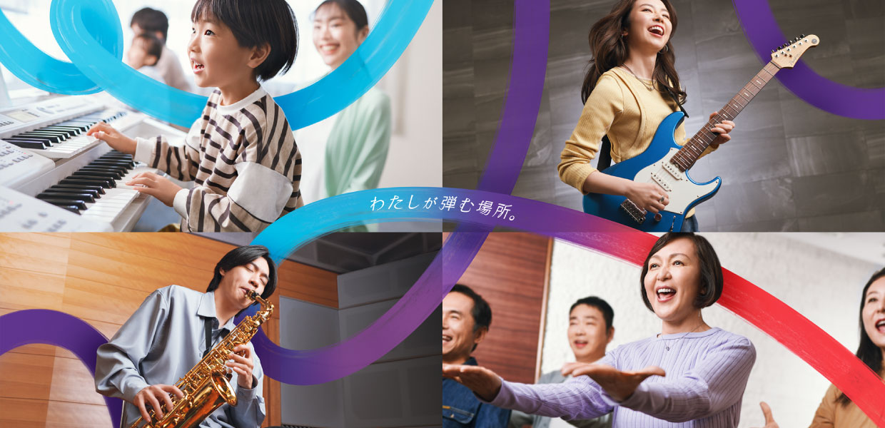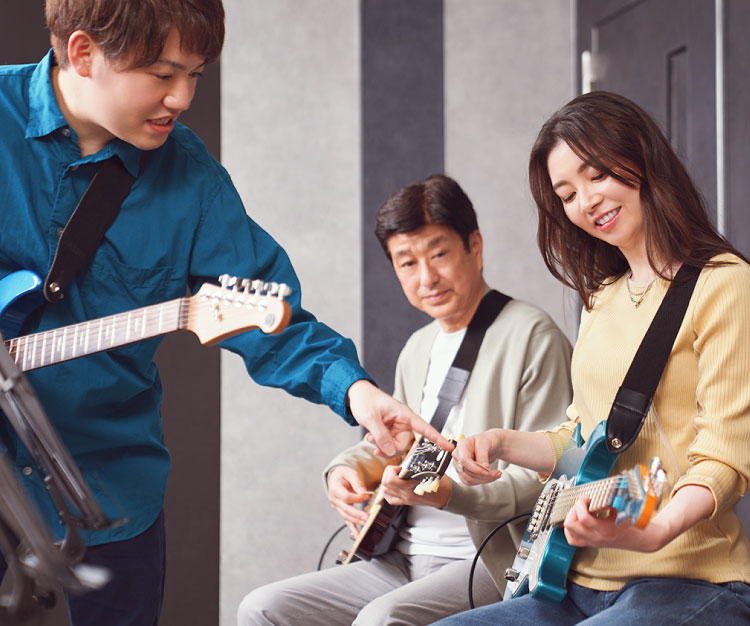 バンド系教科、ボーカル・コーラス系教科、管楽器・弦楽器教科、鍵盤楽器教科など、全32コースを用意し、それぞれの教科で初心者から中上級者まで対応できるコースを設定しています。レッスンスタイルは、従来のグループレッスン、個人レッスンに加え、レベルの異なる複数の会員から構成された1つのクラスの中で、個々のやりたいことができるミュージックジムの全3種類を提供しています。