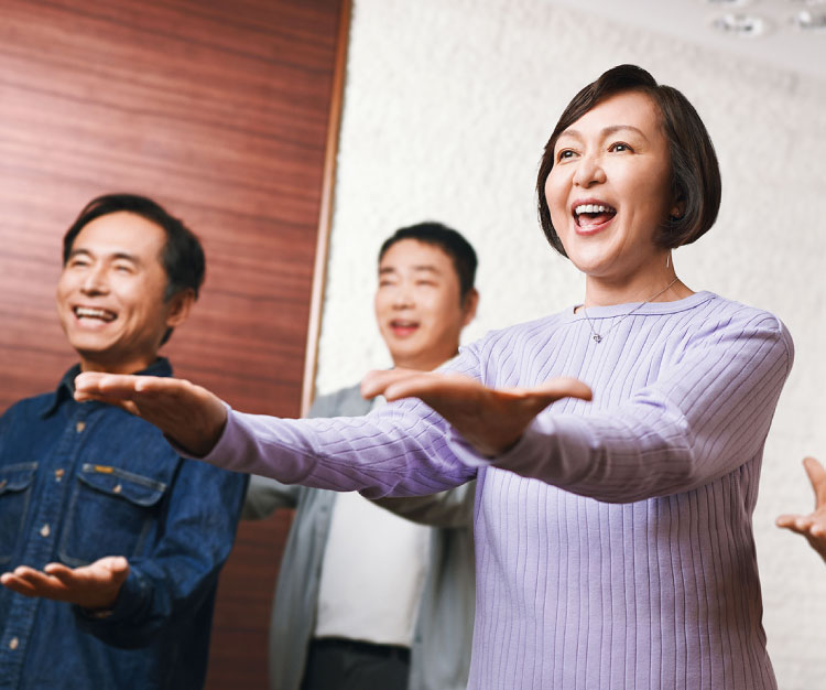 ハモリや簡単なステップ・振り付けにも挑戦することで、頭と身体の健康にもつながります。