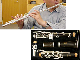 今回の脳活動測定に使用した非磁性体楽器、チタン製のフルートとクラリネット