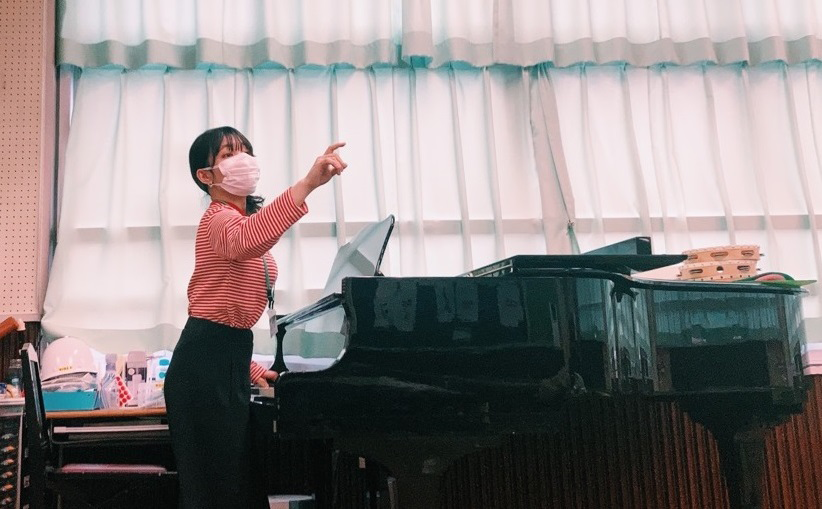 授業のメインが合奏になるのですが、木琴や大太鼓などを一人で準備しないといけなかったり、子どもたちを大きな声でまとめるなど想像以上に体力勝負なところが大変でしょうか(笑)。それでも、合奏や合唱でうまくいったときに拍手して喜んだり、音楽で一体になったことを感じてくれている姿を見られるととても嬉しいですね。コロナ禍でやりたいことができないもどかしさはあるのですが、鑑賞が多くなる中で、生のピアノ演奏でいろいろな曲を聴かせられたのは、ヤマハで培った音楽力の強みだと思っています。子どもたちのリクエストに応えて『廻廻奇譚』や『うっせぇわ』を即興で弾いたり、長調の曲を短調にしたりすると驚いたり喜んだりしてくれます。