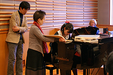 ピリス先生の生徒2名も参加して行われたワークショップは、ピアノを弾く時の体の使い方から、視覚にとらわれないピアノの弾き方、初見で音楽を作る時に注意すべき点など多岐にわたる、非常に興味深い内容となりました。