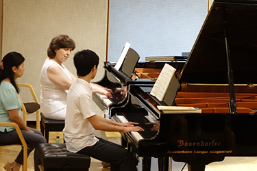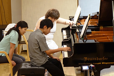生徒たちは、肩や肘に余分な力が入らないような体の使い方、ピアノで歌うための指の使い方、楽譜に書かれていることを読み取りそれをどう演奏に生かしていくかなど、4日間集中的に学びました。
