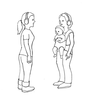 さらに1歳児(14か月児)でも、音楽(The Beatles “Twist and Shout”)に合わせてシンクロする動作、いわばダンスを共有した相手に対して、向社会的行動を多く示すことが明らかにされています※5。この実験では、赤ちゃんを抱っこひもで抱っこした実験者1と何も持たない実験者2が向かい合い、音楽を聴きながら膝を曲げ伸ばししてリズミカルに上下する動作を行います。このとき、実験者1と2の動きのタイミングが完全に一致する条件と、タイミングがずれる不一致条件のいずれかで赤ちゃんを揺らしました。その後、実験者2が赤ちゃんの前で物を誤って落としてしまったりボールに手が届かなかったりして、困っている様子をしてみせます。このときに、赤ちゃんが物を拾ってくれる援助行動は、タイミング一致条件の場合に多くみられたのです。