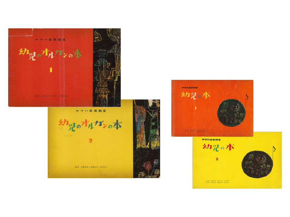 ヤマハ音楽教室、初のテキストは『幼児のオルガンの本』といいます。全日本器楽教育研究会のメンバーだった松本洋二、高橋正夫、伊藤英造の3氏が編著者を務め、講師のための指導書も同時期に編纂されました。