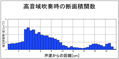 MRI画像の各ポイントにおける断面積関数。同様に、中音域、低音域についても解析。