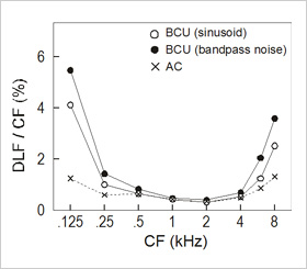 図2:骨導超音波補聴器による周波数分解能特性