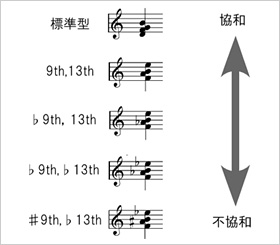 中川: 基準となる不協和音と、そこから段階的に協和音へ近づく和音を4種類作成(図3参照)します。被験者の方々に、基準の不協和音と比較対象の4和音のうちどれかをランダムな順番で続けて聞いてもらい、どちらが協和であるかを回答してもらいました。