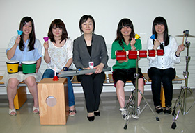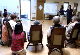 沖田: 2011年8~9月の期間に、専門の音楽療法士を招聘して、13人の高齢者に合唱・楽器演奏を中心とした課題達成型の音楽療法を毎週2回ずつ4週間、つまり全8回のプログラムを継続して実施しました。1回の音楽療法の所要時間は練習時間を含めて60分で、童謡・ジャズ・ポップスなどさまざまな種類の楽曲を6曲使って、合唱や楽器の簡易的な演奏を行ってもらいました。