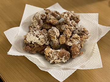 ドイツではほとんどが自炊です。鶏もも肉は骨付きしか売っていないので、唐揚は時間のあるときに肉を剥がして作ります