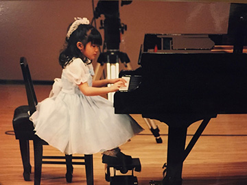 3歳から近所のピアノ教室に通い始め、物心ついた頃には自分の周りに音楽があるのが当たり前の環境でした。学生時代にフルートを習っていた母の影響で、幼稚園生の時に銀座にある楽器店・銀座十字屋さんにハープの体験レッスンに連れて行ってもらい、音色の美しさや弦を弾く楽しさに魅せられました。既にピアノを習っていたこともあり、この時好きだった『となりのトトロ』の曲をすぐに弾くことができてとても楽しくて感動し、絶対にこの楽器を弾きたいと思ったことが今でも忘れられません。偶然小学校の隣駅にある音楽教室にハープがあったことをきっかけに、ピアノからハープに楽器を変更しました。