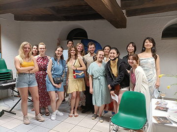 毎年春夏にフランスのガルジレス・ダンピエールで行われるセミナーに参加、この時はロシア人ハーピストのサーシャ・ボルダチョフさん(中央男性)がゲストとしてコンサートを開催されました