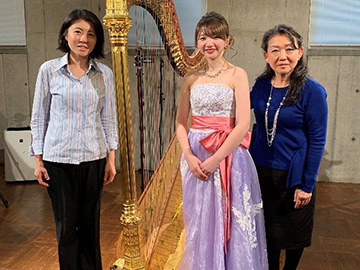 - これまでにアイリッシュハープを林妙子氏に、グランドハープを篠﨑和子、篠﨑史子各氏に、オーケストラスタディを井上美江子氏に師事