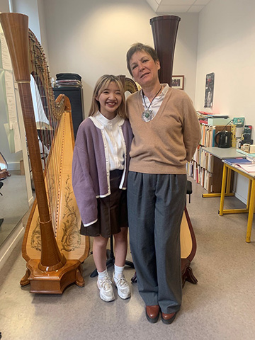 - 9歳よりアイリッシュハープを、10歳よりグランドハープを始める