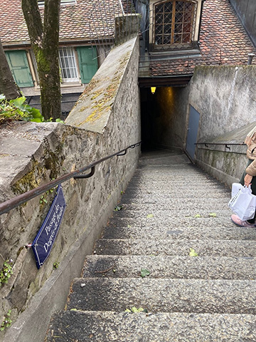 ホームステイ先のご夫人とジュネーヴを散策、旧市街へと続く歴史ある小路です
