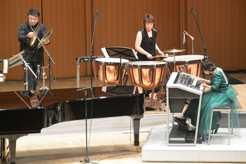 最後を飾ったのは、エレクトーンとパーカッションによる共演。「明日はどんな出来事があるのかな?ワクワク・ドキドキする気持ちを曲にしました」と語る、村瀬 芽吹(むらせ めぶき)さん。ティンパニやシンバル、タンバリンなどと迫力ある演奏を披露し、満員の客席から盛大な拍手が贈られました。