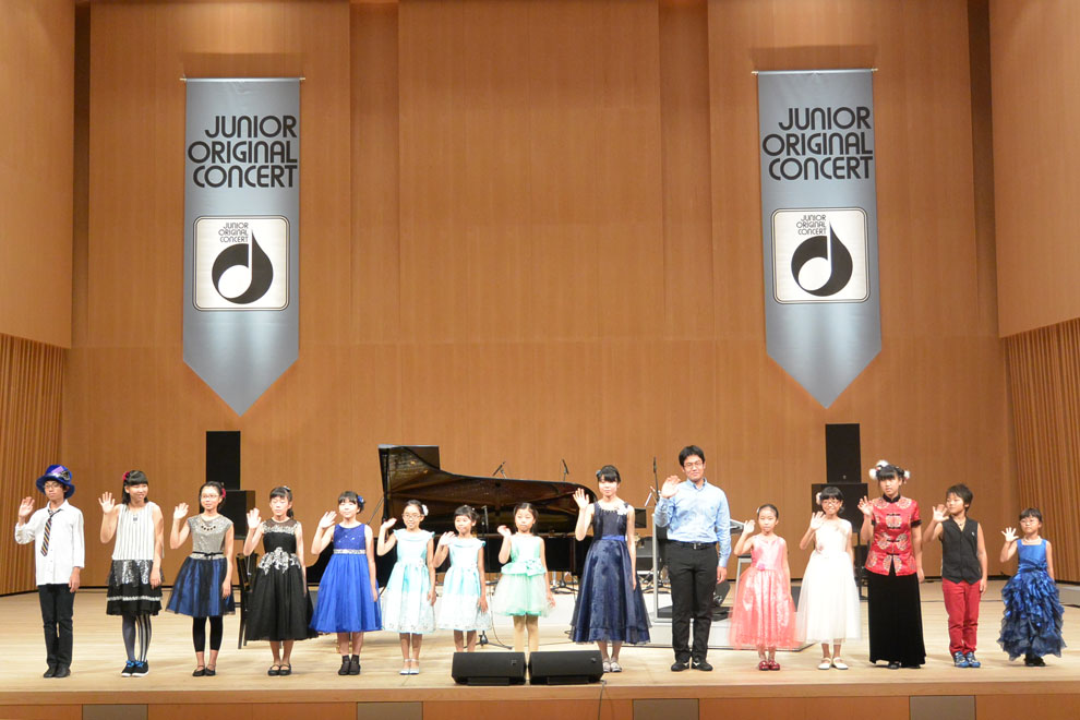コンサートに先立ち、楽屋では主催特約店のもちづき楽器、望月社長から、「思いをこめた演奏をすれば、お客様の共感をよび、感動を生むことにつながるでしょう」と激励がありましたが、その言葉通りのステージとなり、エンディングの出演者ラインナップでは、出演者が満場の観客からの暖かい拍手につつまれ、コンサートの幕を閉じました。