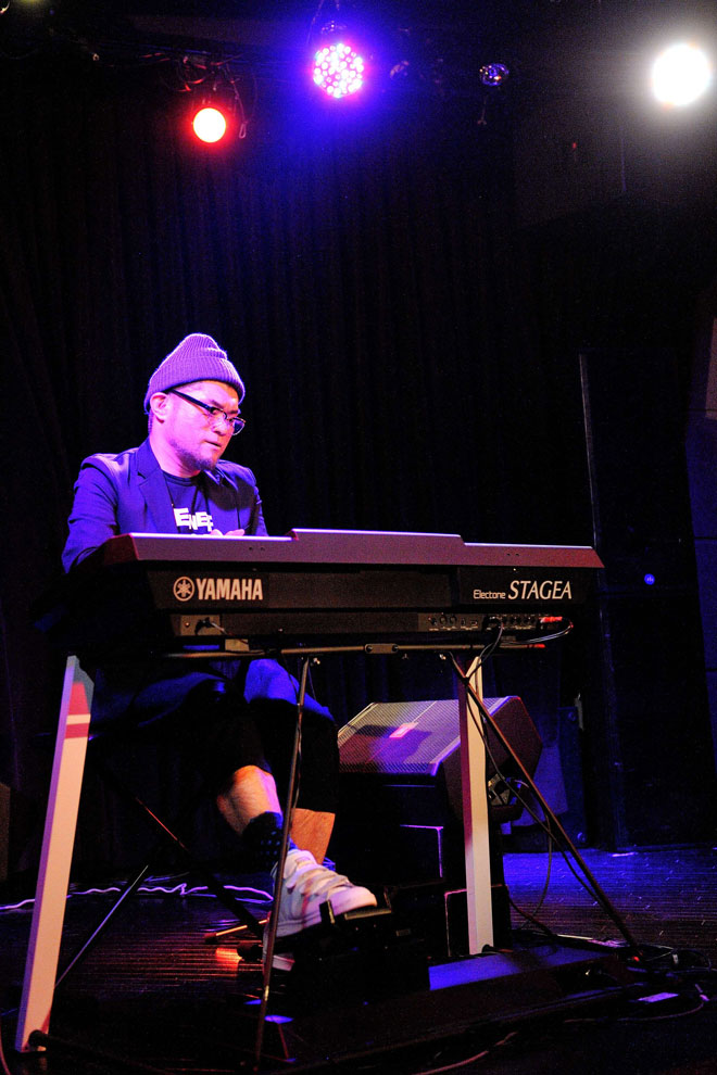 続いて尾野のステージへ。メディアやショップなどでも使用されている代表曲『Liquid Sky』『Jazz Affect』の2曲で攻めスタート!尾野の持つ絶対的なグルーブ感が会場の手拍子を巻き起こし、早くもヒートアップ。続いて前回ライブでセルフカバーをしたという『Cool Vibes』は、ループするメロディーとコードがやみつきに。20代で作曲し、今回再び日の目を見た『Nobody But You…』。ゆったりと浮遊するエレクトリックピアノに酔いしれた。
