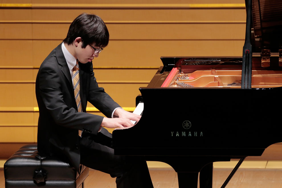 戸澤正宇さん(14歳)はラヴェルの『ボロディン風に』、『水の戯れ』の2曲を演奏。好対照となる2つのラヴェルの世界観を鮮やかに描きました。『ボロディン風に』では、彼が好んだハーモニーやフレーズが垣間見られる穏やかなワルツを、『水の戯れ』では近現代独特のハーモニーを慈しむようにていねいに響かせ、細かな音が密集する中でメロディが際立って聴こえてくる中間部では、確かなテクニックを発揮しました。