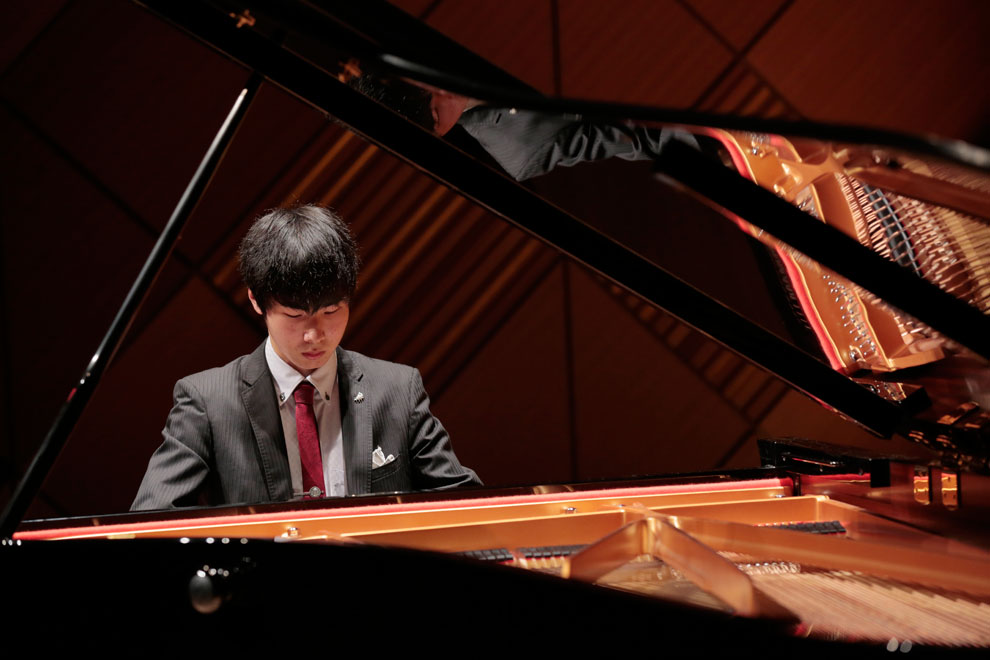 後半は、島村崇弘さん(15歳)のプロコフィエフの『ソナタ第2番』から。心を揺さぶるような激しさと繊細さを併せ持ったプロコフィエフの感情が伝わってくる第1楽章、スタッカートと重厚なハーモニーが特徴の第2楽章と、さまざまな奏法が網羅された各楽章を表情豊かにたっぷりと聴かせていきます。悲哀に満ちたハーモニーの中に浮かび上がるメロディの静謐さが印象的な第3楽章に続き、先へ先へとスピーディーに進んでいく激しい展開が特徴の第4楽章ではひとつひとつの音を入念に、そしてダイナミックに響かせ、プロコフィエフの熱を帯びた心情を見事に表現しました。