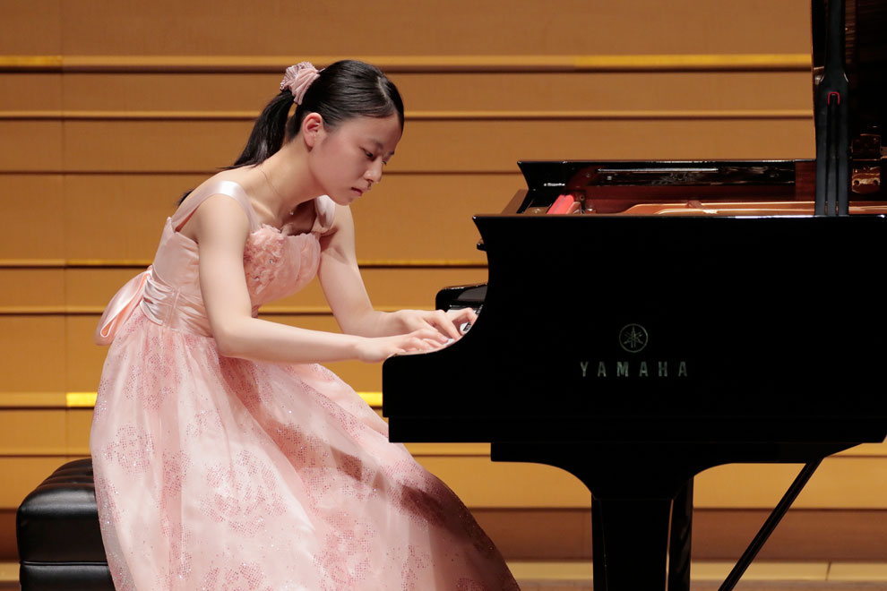 最後に、小嶋早恵さん(16歳)がチャイコフスキー(編曲:プレトニョフ)の『眠れる森の美女』から7曲を演奏しました。大胆なアプローチから始まる「プロローグ」、同音連打が特徴の「情景」、鳥のさえずりと羽根の動きのようなフレーズが楽しい「歌うカナリアの精」、強弱の変化がスリリングな「赤ずきんちゃんと狼」など、小嶋さんの確かなテクニックによってチャイコフスキーの音楽の魅力とともに物語の楽しさが伝わってきました。最終曲の「フィナーレ」ではバレエ曲らしい軽快なリズムと重厚なハーモニーが会場いっぱいに響き渡り、コンサートのフィナーレを華麗に飾りました。