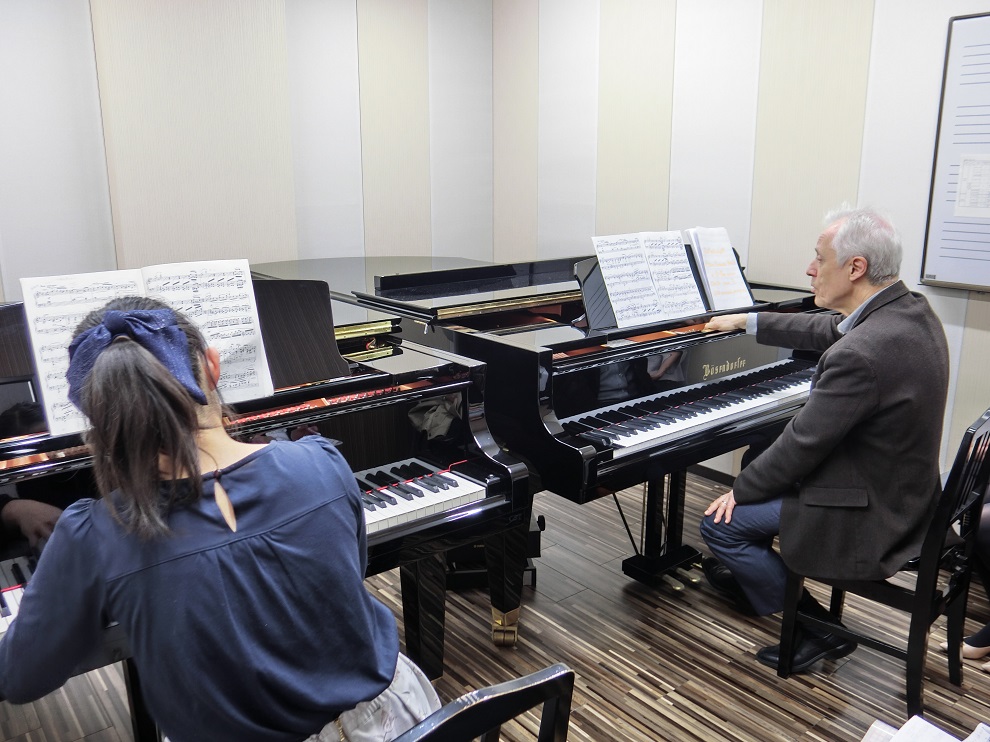 2017年12月28日と2018年3月27日・28日に、コンクールの審査員でもあるパスカル・ドゥヴァイヨン氏を講師に迎え、「ピアノ特別レッスン」を実施しました。これは「第2回YJPC」(2017年開催)の第1位から第3位入賞者を対象に、副賞のひとつとして学習の機会を提供したもので、ヤマハ音楽振興会本部(東京都目黒区)、ヤマハなんばセンター(大阪府大阪市)で、合計13名が60分間から90分間のレッスンを受講しました。