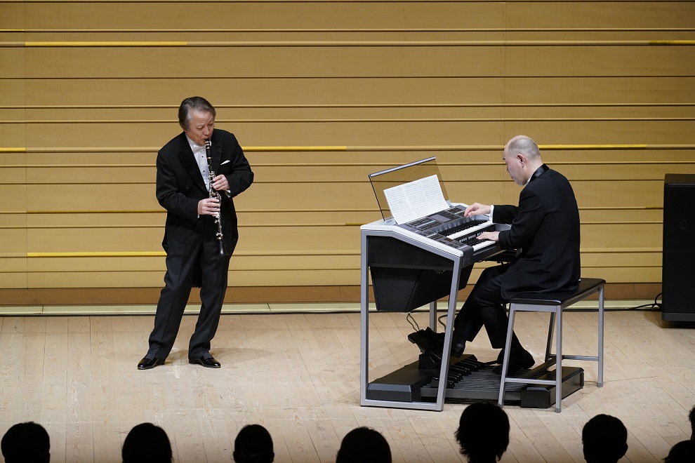 それを充分に引き出したのは、渡辺の確かなアンサンブルセンスや演奏技術に操られるエレクトーンであったと言える。時にはクラリネットの伸び縮みに並行しつつ時には反抗して伴う演奏は、ソリストとオーケストラという本来のコンチェルトの形を彷彿とさせるのに加え、1対1の室内楽的なアンサンブルが見事に成立し、エレクトーンが協演楽器として期待以上の役割を果たすことを証明して見せた。