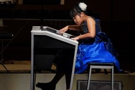 藤崎円緒さん(13歳)は、『組曲「ダンス!ダンス!ダンス!」』(2018年度JOC参加作品)を披露。ピアノとバイオリンの共演で、人、小鳥、ポップコーンが自在に舞う様子を熱演し、会場を盛り上げました。大塚菜々美さん(13歳)は梅雨の山地に咲く「山荷葉」の花をイメージした『山荷葉~朝露に光る透明な花~』(2018年度JOC参加作品)をエレクトーンで演奏。花の多彩な表情を見事に表現しました。