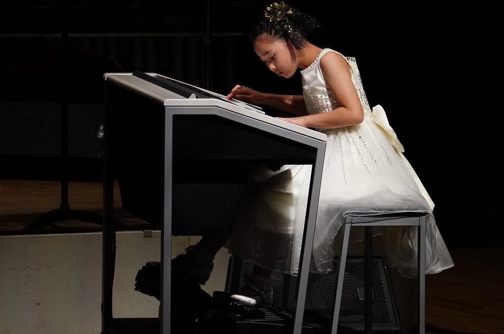 藤崎円緒さん(13歳)は、『組曲「ダンス!ダンス!ダンス!」』(2018年度JOC参加作品)を披露。ピアノとバイオリンの共演で、人、小鳥、ポップコーンが自在に舞う様子を熱演し、会場を盛り上げました。大塚菜々美さん(13歳)は梅雨の山地に咲く「山荷葉」の花をイメージした『山荷葉~朝露に光る透明な花~』(2018年度JOC参加作品)をエレクトーンで演奏。花の多彩な表情を見事に表現しました。