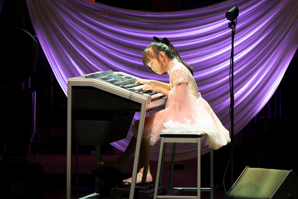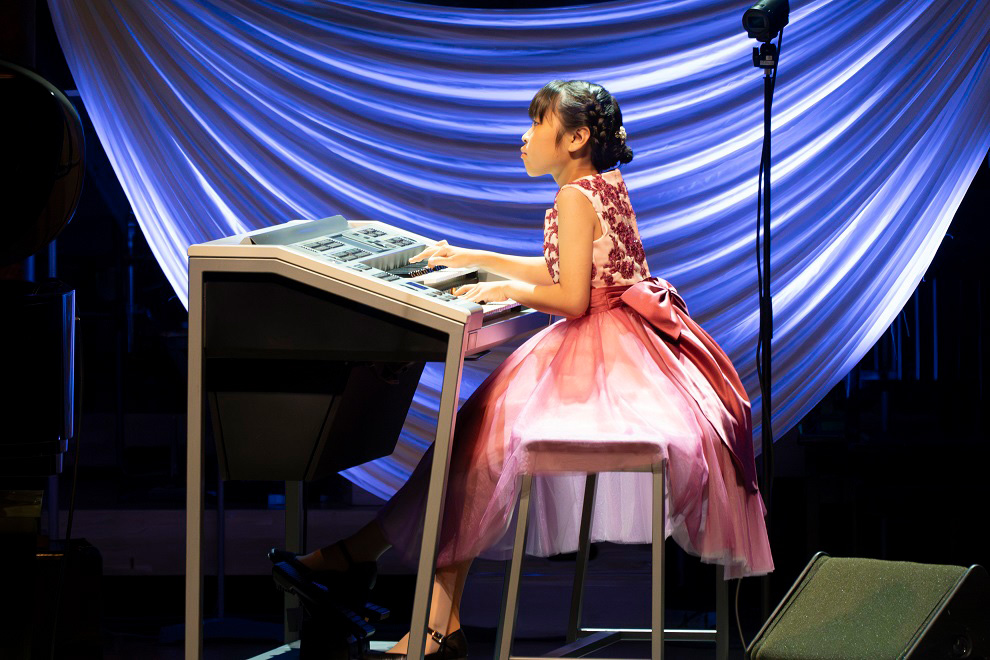 続いては中国からの出演となるオードリー・ジー・チェン(9歳)さん。エレクトーンのソロで演奏した『The Spiritual Mountain』は、中国の伝統楽器の音色をふんだんに取り入れ、オーケストラと融合させた壮大な楽曲。オリエンタルな雰囲気もたっぷりに、雄大な風景を描き出しました。