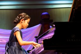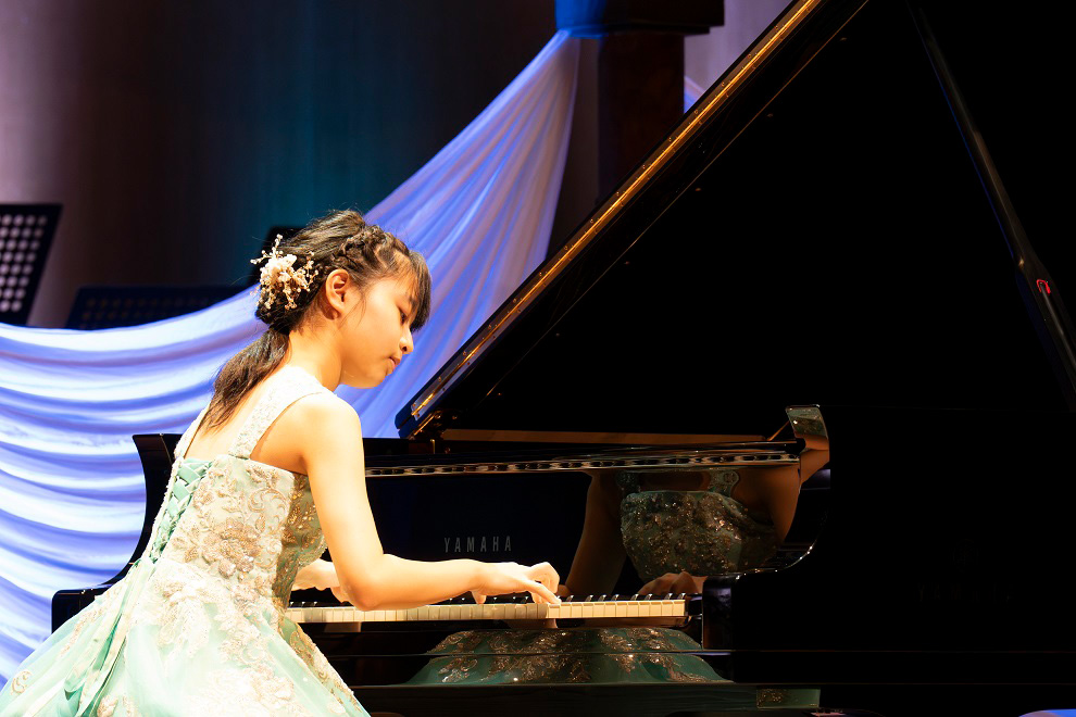 昨年のYJPCのC部門(12歳以下)で第1位を獲得した佐々木悠衣(ささきゆい・12歳)さんは、リスト作曲『巡礼の年 第1年「スイス」S.160より 第3曲「パストラール」 第4曲「泉のほとりで」』を演奏しました。緩急のメリハリある表現力と変化に富んだ音色の弾き分けで、聴衆を楽曲の世界観に引き込みます。