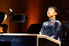 赤坂哲(あかさかてつ・14歳)さんは、YEF2023中学生部門の第1位に輝いています。今回はラフマニノフの『ピアノ協奏曲 第1番 嬰へ短調 Op.1 第3楽章』を披露しました。オーケストラの立体感のある音作りと、鍵盤の上を縦横無尽に駆けまわるようなテクニックで圧倒的な演奏を聴かせてくれました。エレクトーンならではのオーケストラの表現を追究している姿が、頼もしく映ります。