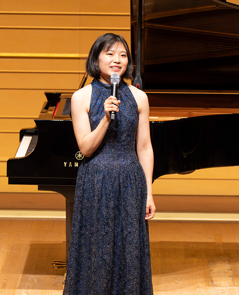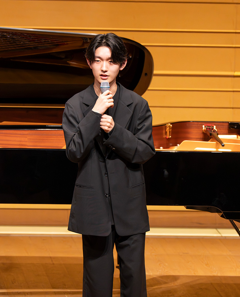 「こうして奨学生コンサートに参加できて嬉しいです。2022年からミュンヘンフィルハーモニー管弦楽団のアカデミー生として研鑚し、現在はベルリン芸術大学大学院の修士課程で学んでいます。コロナ禍で活動が思うようにいかない時期もありましたが、むしろその間に自分とじっくり向き合うことができました。将来は日本国内だけでなくドイツでも活動できるようになりたいと思っています」