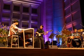 そして第1部最後は再びJOC作品から、林大士朗さん(14歳)の作品がラインアップ。川や潮、過ぎ行く時など、“流れ”からイメージを膨らませた『Flow』を、林さんのエレクトーンと、ベース、ドラムの共演者とのアンサンブルで奏でました。ピアノを中心にデジタルなサウンドも駆使したナンバーで、3人のアンサンブルで激しい流れが生み出されていく様を堪能しました。