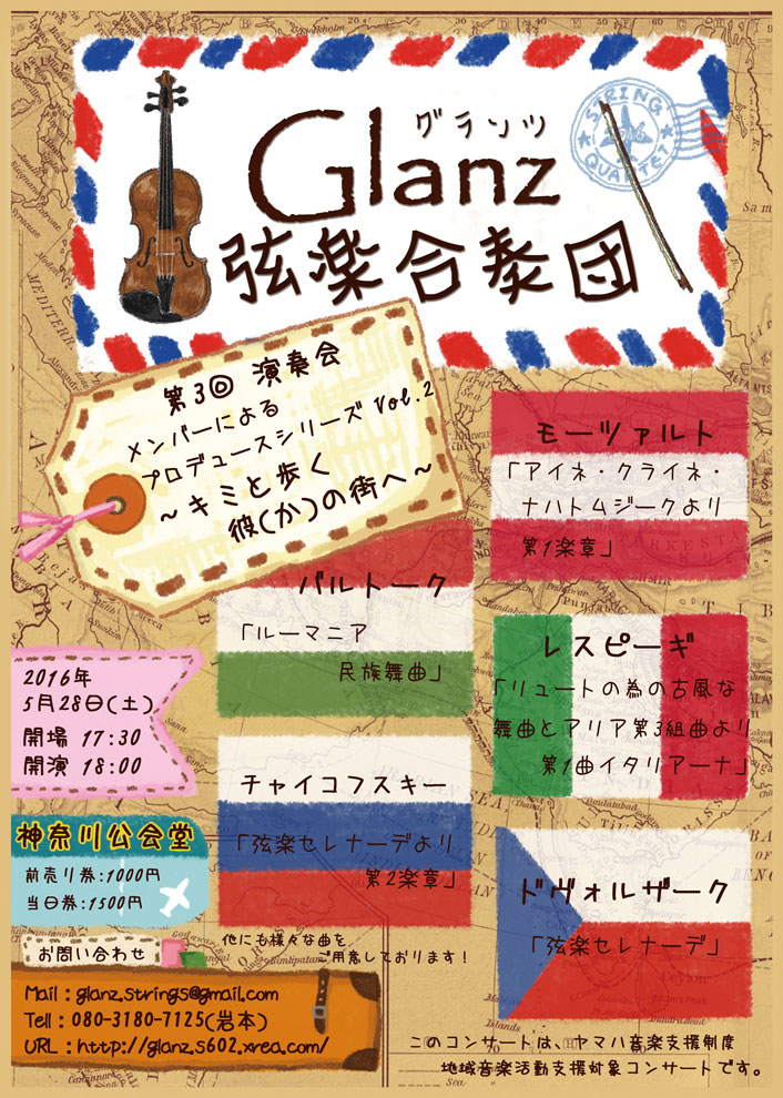- ・活動内容:「Glanz弦楽合奏団 第3回演奏会 ~キミと歩く彼(か)の街へ~」
