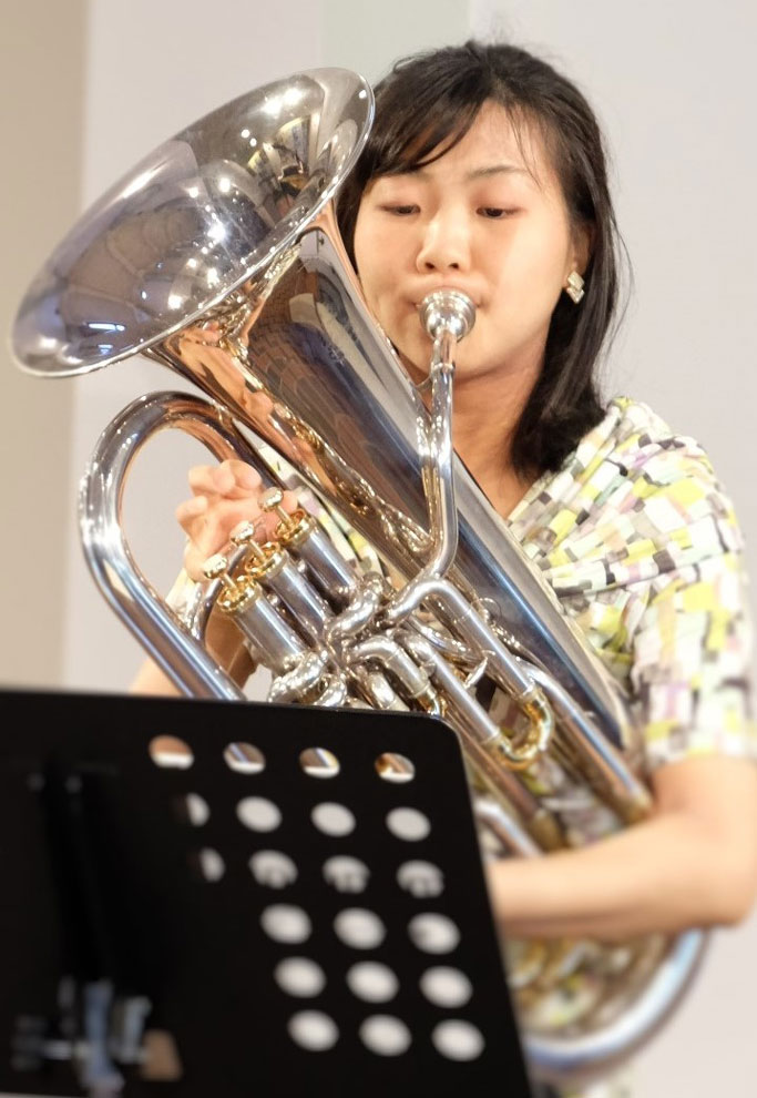 第2部はゲストの川野聡子さんが登場、ユーフォニアムの紹介や楽器の重量当てクイズなどの後、ピアノ伴奏でソロ演奏を披露されました。