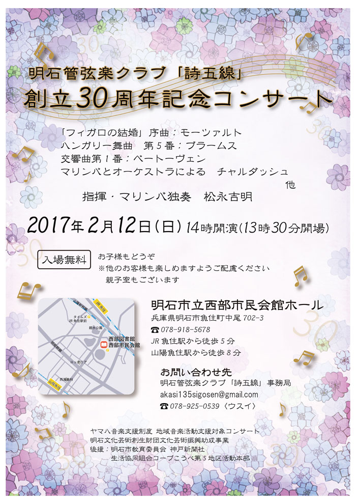 明石管弦楽クラブ「詩五線」は昨年創立30周年を迎えました。