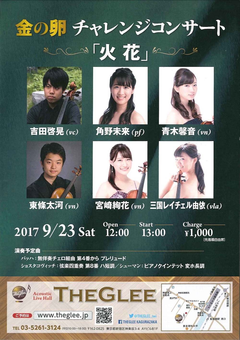 神楽坂のアコースティックホール TheGLEE(ザグリー)における、金の卵「火花」シリーズの企画・演奏・プロデュースを務めています。