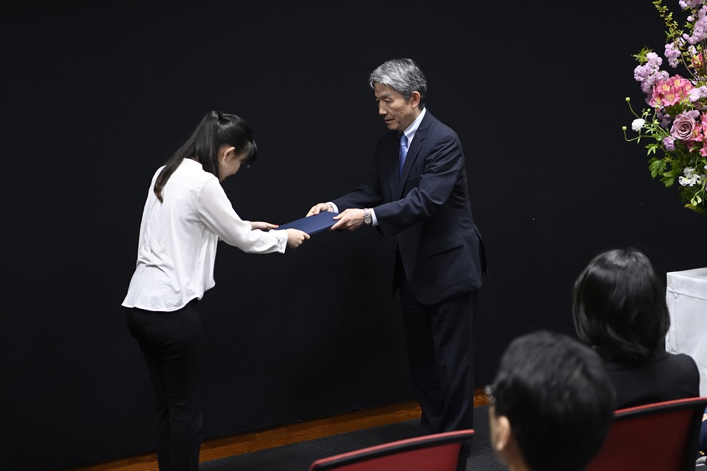 式では、まずヤマハ音楽振興会常務理事の大池真人が登壇し、「音楽にはもっとできることがあると私たちは確信しています。その音楽に全力で取り組む皆さまを支援していきたい」と祝辞を述べたあと、一人一人に認定証を授与。その後各対象者が今後の抱負や目標を交えながら、支援対象者に選ばれた喜びを語りました。