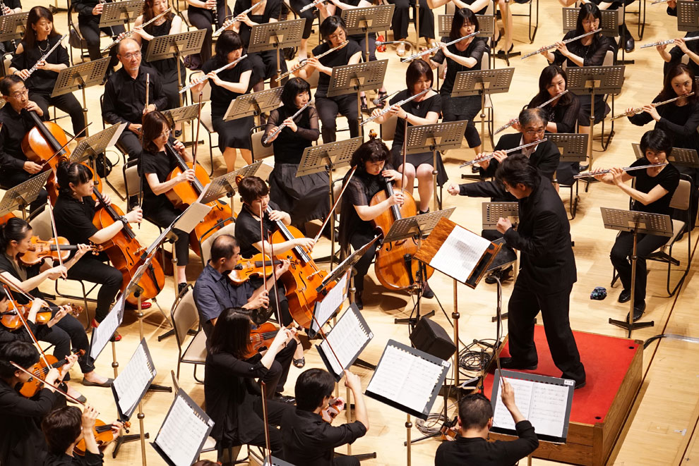 ステージいっぱいに並んだ弦楽器群、管楽器群、さらにドラム、ベース、ピアノというリズムセクションが織りなすサウンドはこれぞアンサンブルフェスティバル! というべきゴージャスなサウンドです。