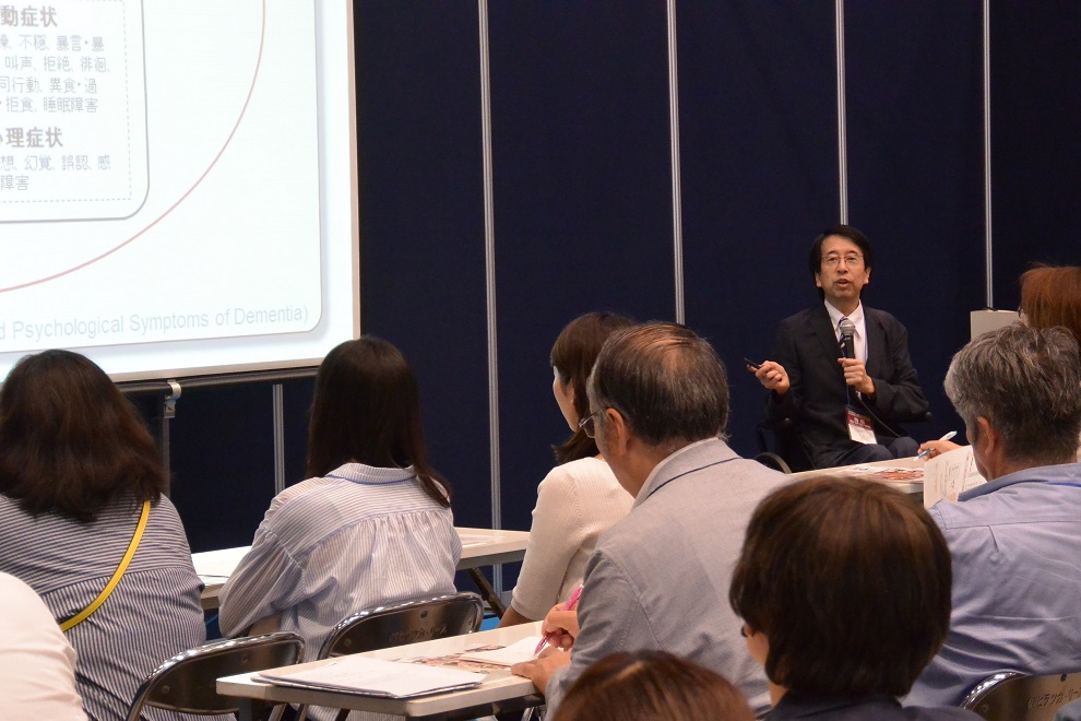 地域包括ケアEXPO東京では、共同研究者の佐藤正之准教授(三重大学認知症医療学講座)によるセミナーが約30分にわたり行われました(13日)。