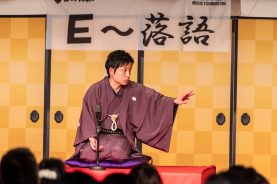 三味線や鼓の音色が、どことなく日曜夕方のテレビで聴いたことのあるようなオープニングのオリジナル曲の演奏から、期待いっぱいに始まりました。落語家さんが登場するときの音楽を「出囃子」と言い、一人一人違うのですが、これもしっかりエレクトーンで再現されていて、会場が一気に寄席の雰囲気に変わります。